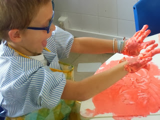Porque as atividades plásticas ajudam à adaptação, desenvolvem a motricidade fina de uma forma agradável e lúdica e estimulam a criatividade, nós continuamos a experimentar e...